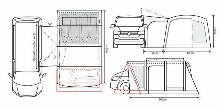 New model from the Cayman range introduced for 2022 the Outdoor Revolution Cayman Cacos Air SL Low ideal for vans with a rail fitting height between 180-210cm. The awning attaches to your van with ease, with both the option of a 4mm or 6mm kador for more versatility. Further to this, it is designed to be free standing, so you can leave the site with peace of mind, knowing that you just need to reattach it once you return from your day out in the van