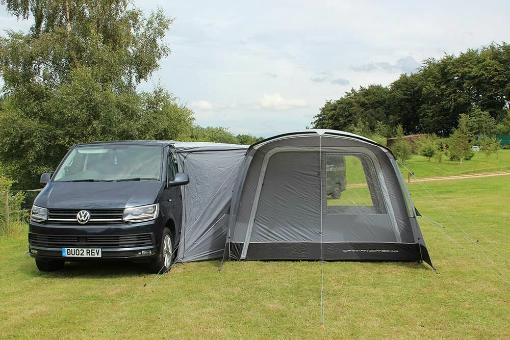 The Outdoor Revolution Cayman Combo Air, a unique and stylish awning suitable for both UK and continental vans, due to the dual entrance design. This makes it ideal for vans where the habitation door is on the left or the right hand side of the camper van. Furthermore, the design is sideways facing, which helps to maximise the living space to the side of the camper van. It is lightweight in design with a 70 denier fabric, 3000mm polyester fabric. New for 2022 if using with the additional Porch Door a cabin Inner tent will fit inside.
