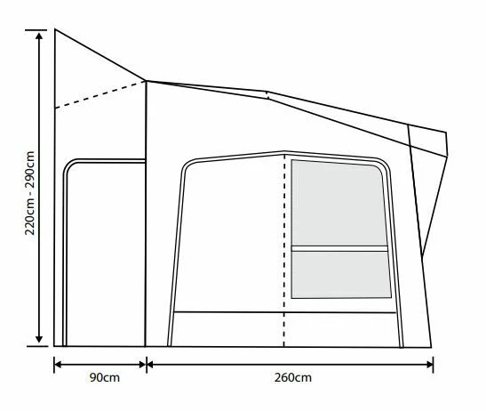 The product is designed with luxury in mind, utilising the Oxford Weave 600 HD Polyester high-density fabrics, a reliable fabric offering a low weight of 38.95kg, and small pack size, whilst still offering a 6000mm hydrostatic head. Further to this, the single-inflation point makes the pitching of the awning extremely quick and features airlock designs on each tube to isolate individual beams.