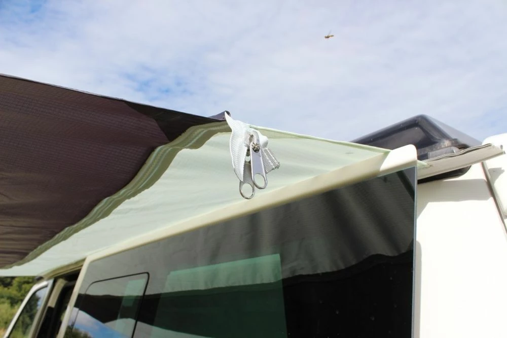- Connects to the rail on your caravan or camper van with the pre-stitched Kador strip, and then zip on your Movelite canopy and peg out.
