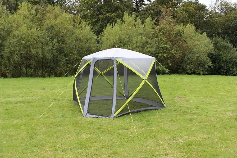 Providing a quick-pitching, portable structure, designed to be quick, simple and easy to pitch. The roof panel is waterproof, with mesh side walls, to create a through-breeze throughout the shelter.