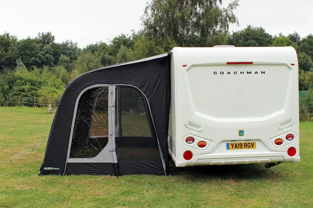The Outdoor Revolution Sportlite 400 is a robust, lightweight awning, designed for touring purposes, with a smaller pack size than a more traditional design, and as the name suggests, a lighter weight of just 21kg. It is highly weatherproof, packed full of technical features such as the Single Point Inflation, and plenty of versatile optional extras, such as the annex to add sleeping space to the side.