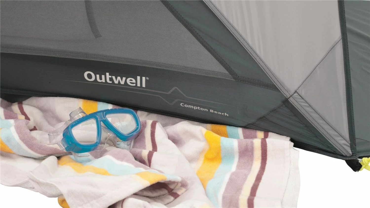 The Compton Beach Shelter from outwell offers a fast pitch shelter for days out at the beach. It has a sun resistant UPF 50+ flysheet and mesh panels for hotter days. It also features nylon bags to be filled with sand to hold it down.