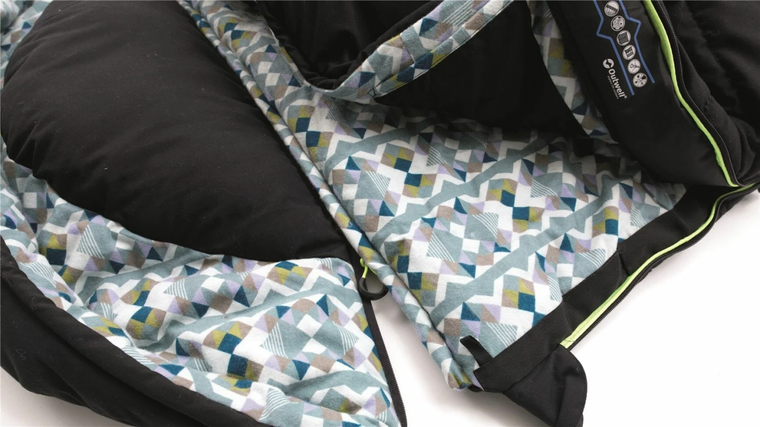 The Outwell Camper Lux represents perfection. Designed for those who want the very best in comfort. The Camper Lux is the most popular in the range, as it offers superlative warmth, comfort and versatility, due to the zip off hood, the built-in pillow and the easy zip glide system, to ensure the zip does not get snagged in the bag’s material. Designed with an 1700g Isofill filling, A polycotton outer and a cotton lining offer a soft feel, further enhancing the comfort of the bag.