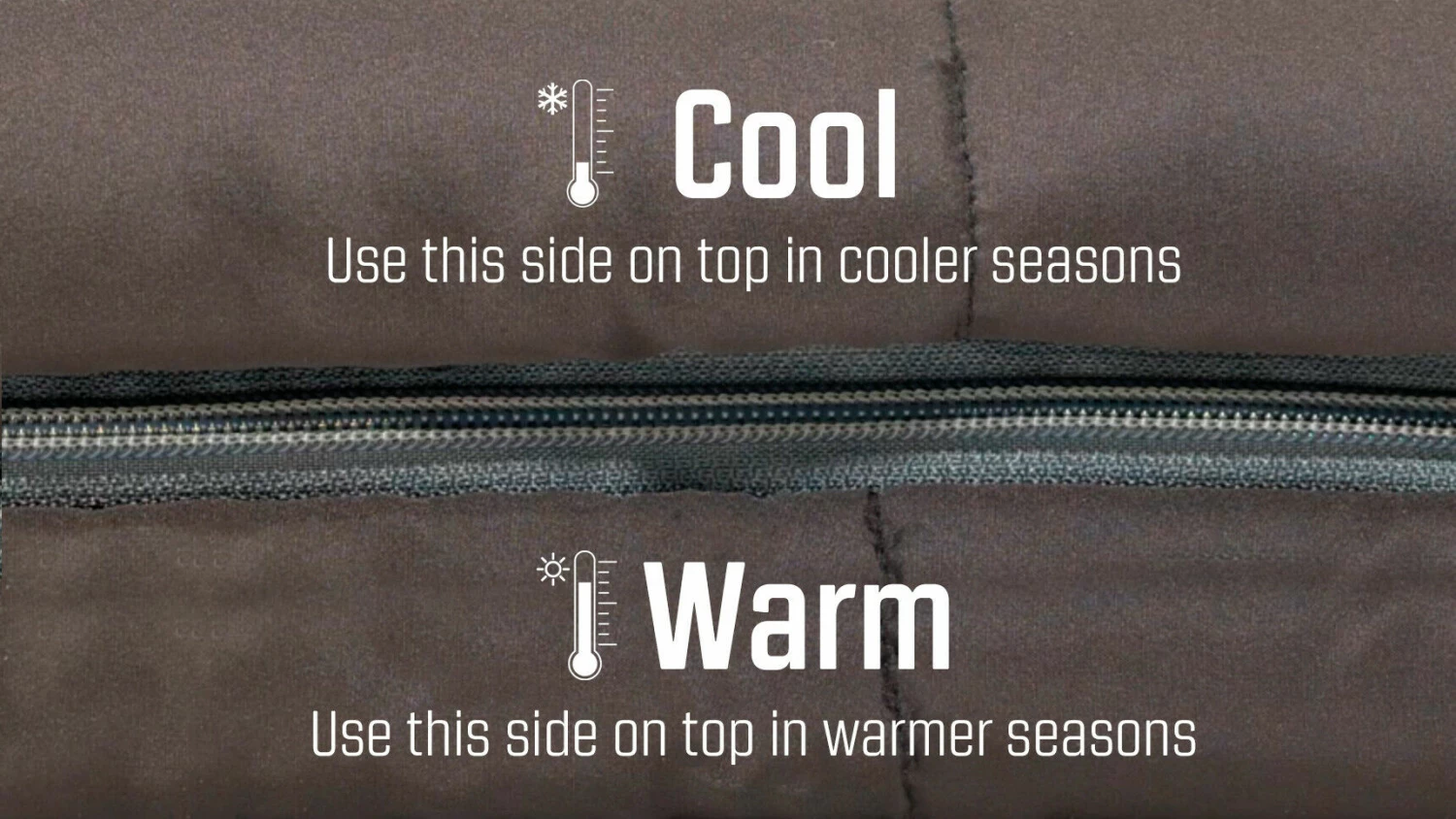 The hood can zip off for convenience so you can still use the pillow when you use the cooler side and you can also unzip the bag from itself to create a double sized duvet. An easy glide zip system with Full-length zip baffle to keep out draughts but also convenient as the zip is 2 way allowing you to maximise air flow when required