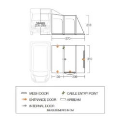 The front door of the Milestone Dash can be rolled to the side to create a large entry point, which can also just have an insect screen up to improve ventilation by leaving the door open without the fear of flies easily invading your living space. Further to this, the removable groundsheet for the access zone also comes with a draught excluder skirt for the gap between the bottom of the van and the floor. The main living space benefits from the protection of a sewn-in groundsheet, to increase the comfort, warmth and weatherproofing.
