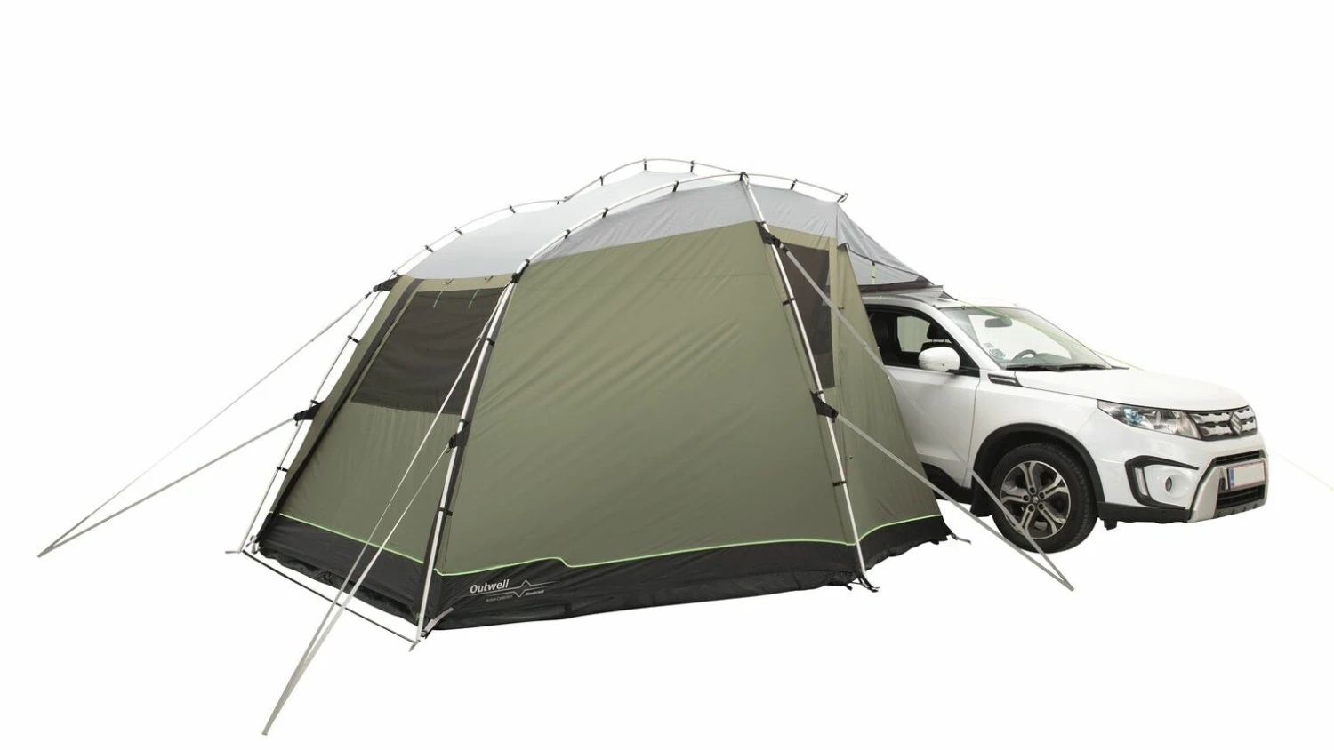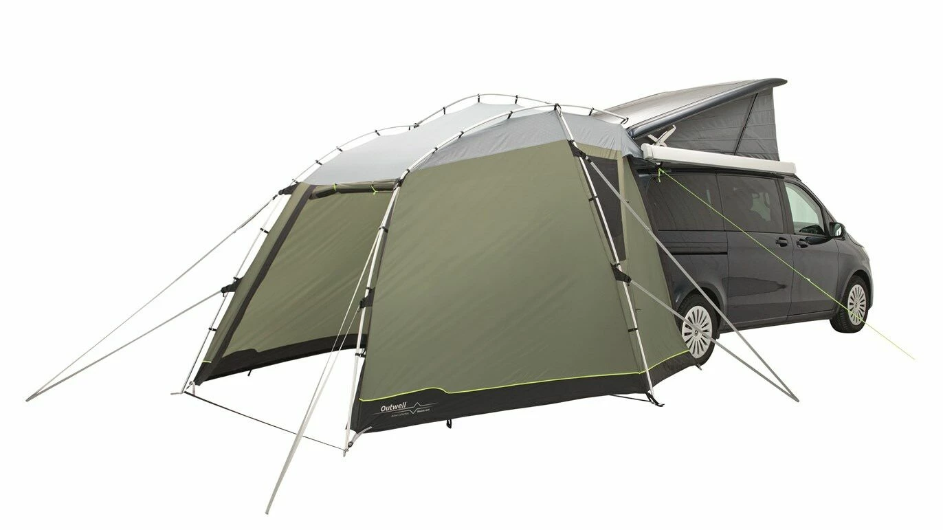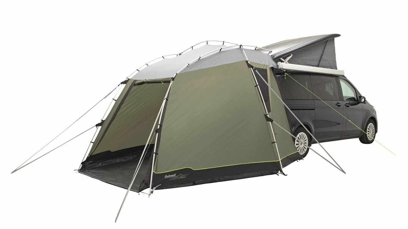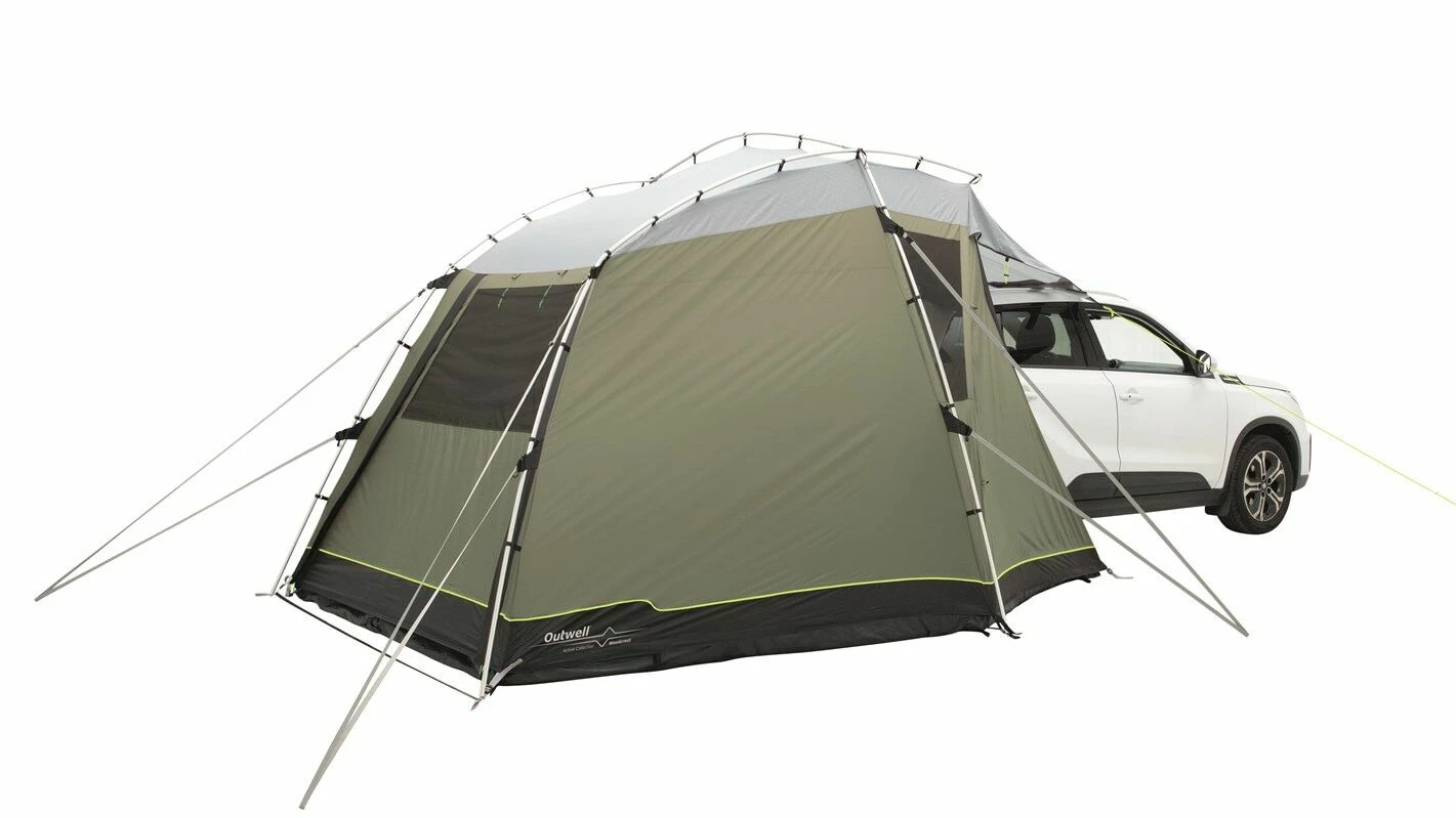 Designed for campers or cars, the Outwell Woodcrest is a versatile poled tailgate awning with a drive away design. The Woodcrest is the perfect companion for touring holidays due to the ease of set-up and set-down. It has a domed design will attach to vans with a height between 175 and 200 cm, and is able to fit either the rear and side of a vehicle to provide plenty of additional space to relax in comfort. The highly waterproof Outtex 3000 Select Flysheet clips onto the Aluflex System of pre-bent aluminium poles, to make it quick and easy to pitch securely, and to set it down afterward. The front and rear doors can also be rolled away or pitched out as canopies to enjoy the views or to create a fresh breeze.