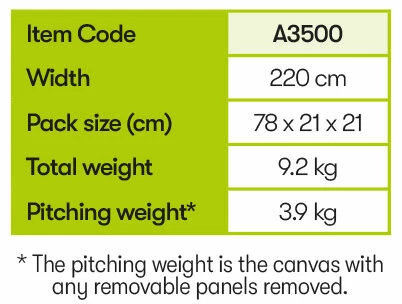 The Quest Falcon 220 poled caravan awning – the smallest and lightest weight (6.85kg) of the Falcon Range, designed to be easy to use and budget-friendly. The It perfect for short-term camping trips, lightweight and adjustable for great pitching, even on uneven ground.