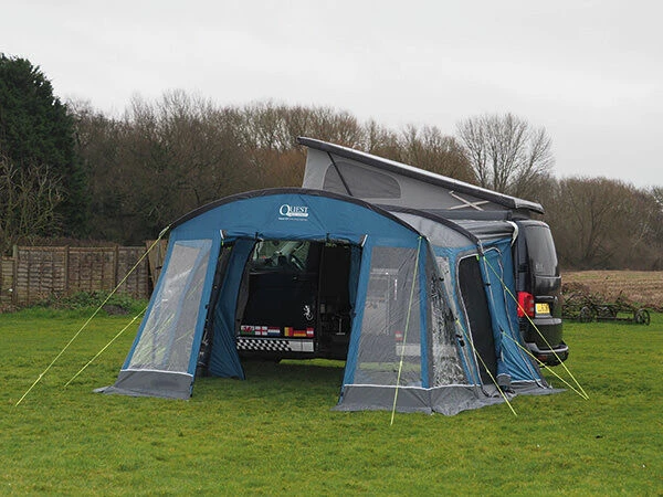 Built in zipped drive away kit and sewn in rear draught pads both offer a better connection to your vehicle and the adjustable multi fit frame adds to this by being quick pitching using the minimum amount of poles necessary and adjustable to work well on uneven ground
