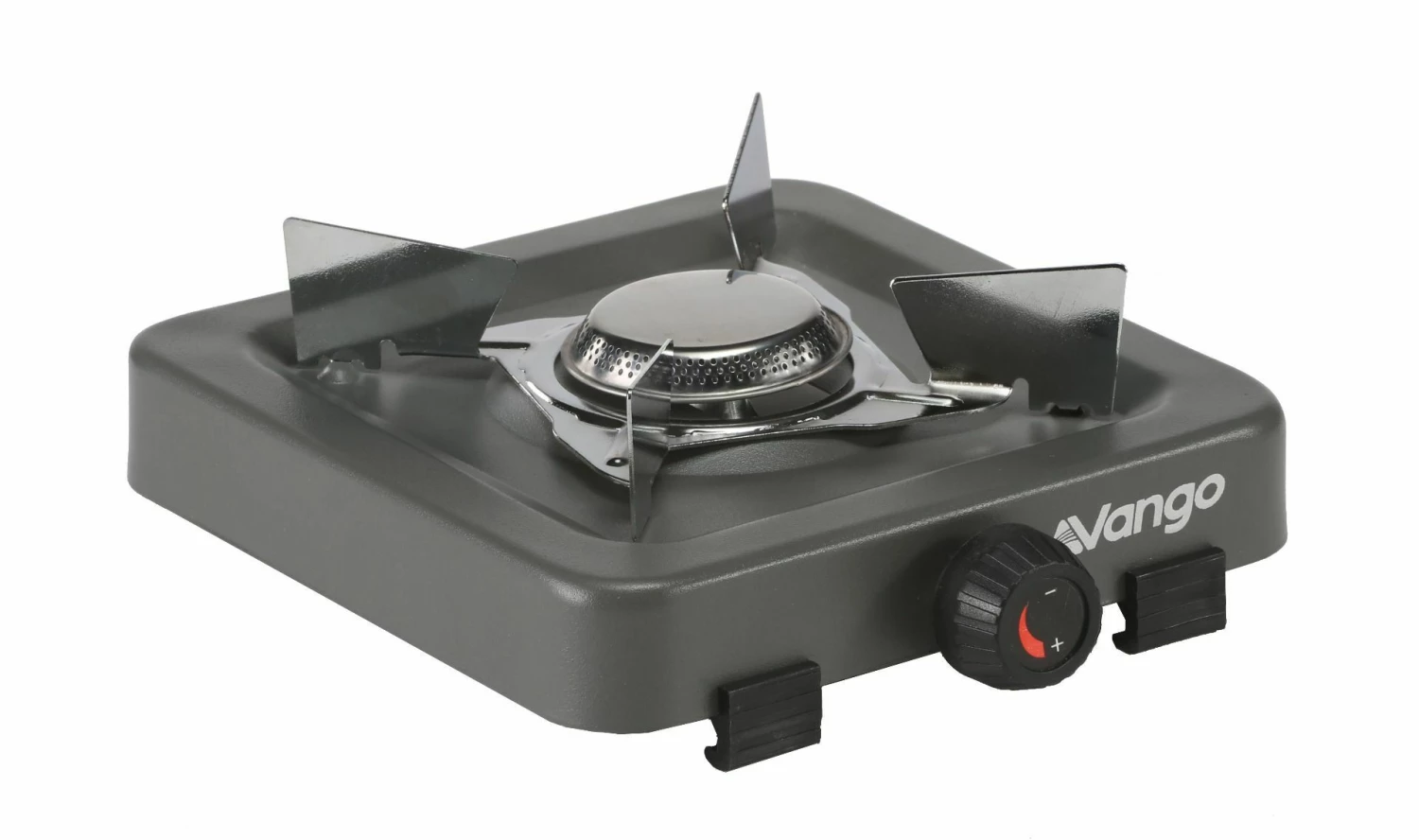 Vango Blaze Single Burner Stove The Vango Blaze Stove is an essential piece of kit. The single burner stove offers great heat output for quick efficient cooking. Stainless steel ring makes it easier to clean. With the low design combined with anti-slip feet ensure safety and stability. PVC hose included with auto shut off for safety must be used with gas cartridges that comply with EN417