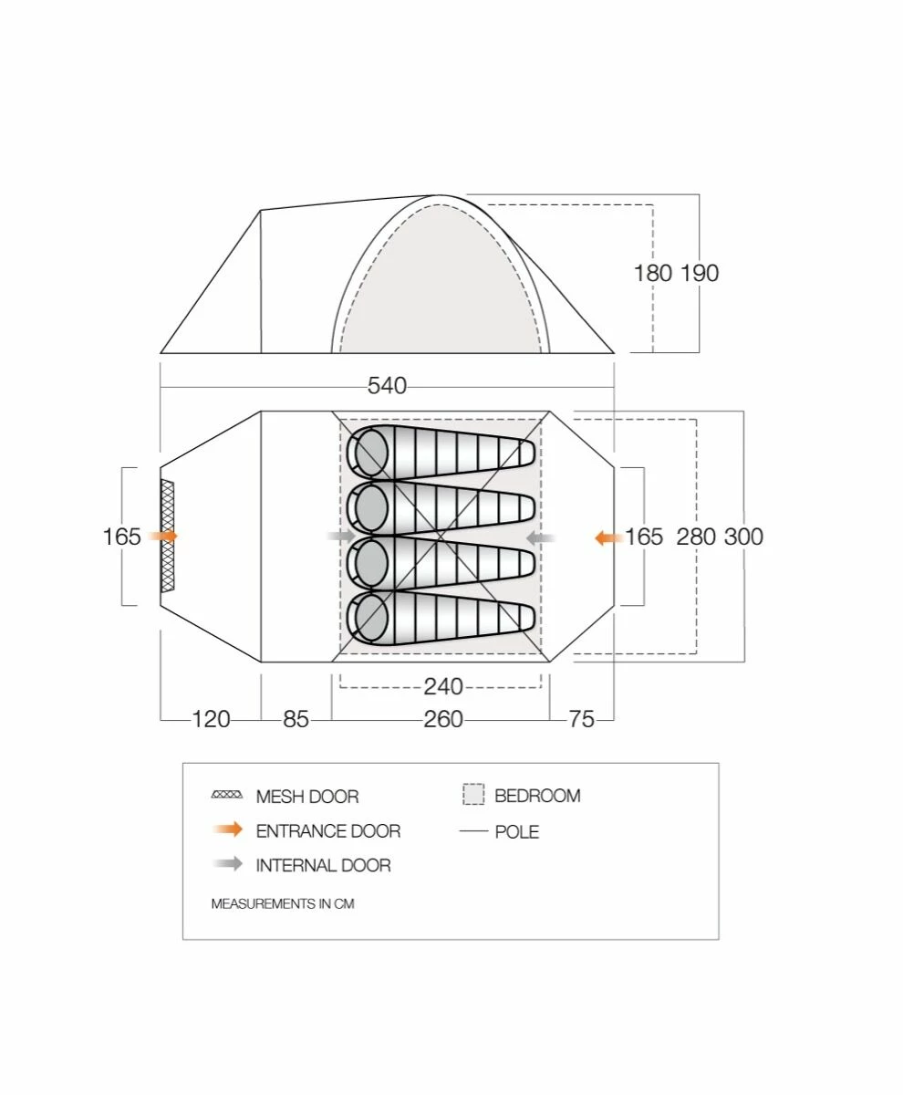 - Mokala 450 Protex 70 Denier Polyester Flysheet 3000mm HH – Highly waterproof, durable and reliable fabric, exclusive to Vango.