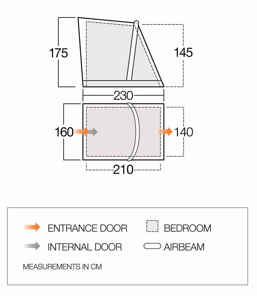 The Vango Riviera Tall Annex is a single Airbeam structure to provide extra storage or sleeping space to the side of your caravan awning. Featuring the pre-inserted Vango Midnight Bedrooms, darkened to provide a great night sleep. Furthermore, the aanex is made with the same Elements “all-season” fabric, which is highly durable and strong.