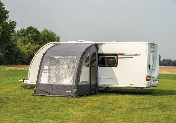 New to our collection, the Westfield Travel Smart Lynx caravan awning is a unique, lightweight, portable model, which is super quick to set up and set down. Perfect for those who require a small porch, which provides external space for storage for muddy items, such as boots or wet clothing. It has space for socialising and is ideal for the addition of two seats, with large open windows, which are complete with toggled privacy curtains.